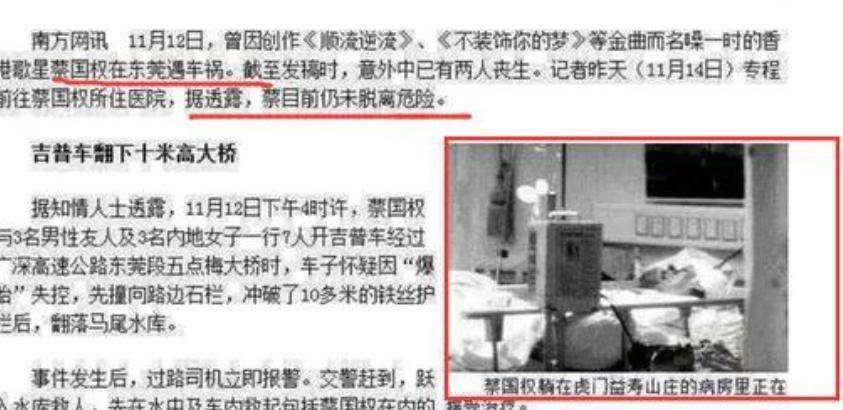 這場交通事故十分慘烈,車上7個人,有3人當場身亡,蔡國權和另外3人受了重傷,被緊急送往醫院搶救。