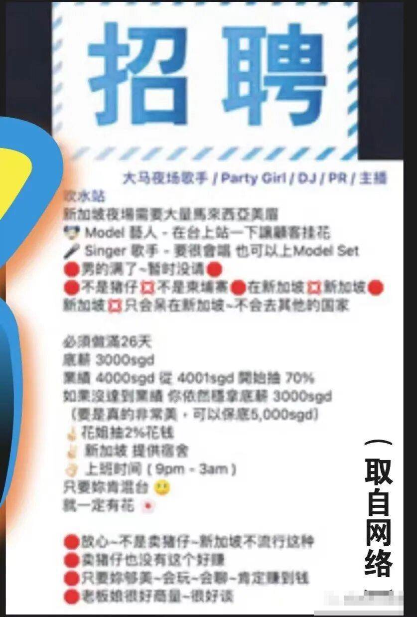 “新加坡夜场急需大量美眉!底薪3000新元,业绩4000新元以上可抽70%!不是猪仔,不是柬埔寨,就在新加坡,不去其他的国家!欢迎越南、泰国、柬埔寨、中国台湾等美女前来应聘~”