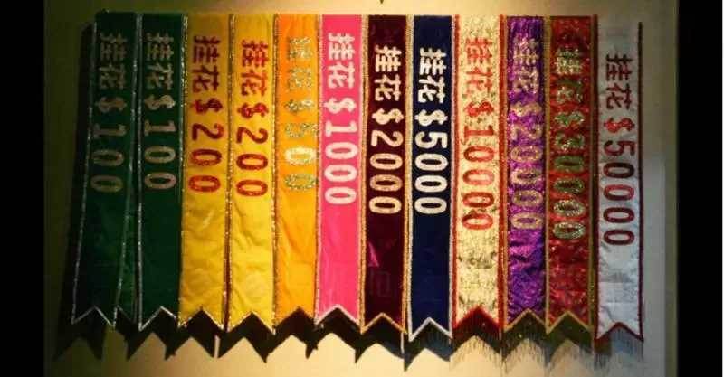 遇到豪气冲天的老板,直接狂砸10万、甚至上百万新元的锦带,把歌星从头到脚裹得严严实实,活脱脱一个“挂花粽子”。